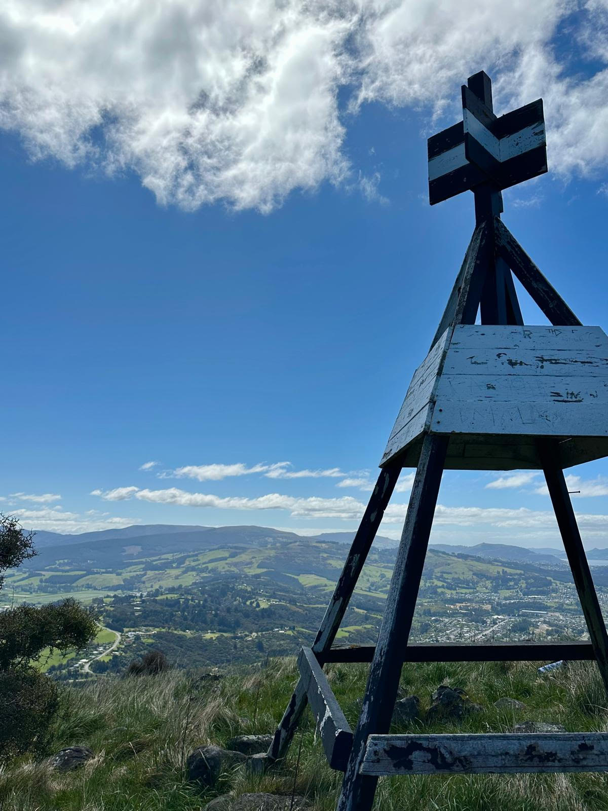 toward the top of Saddle Hill. As you climb, the views widen — Mosgiel and Dunedin