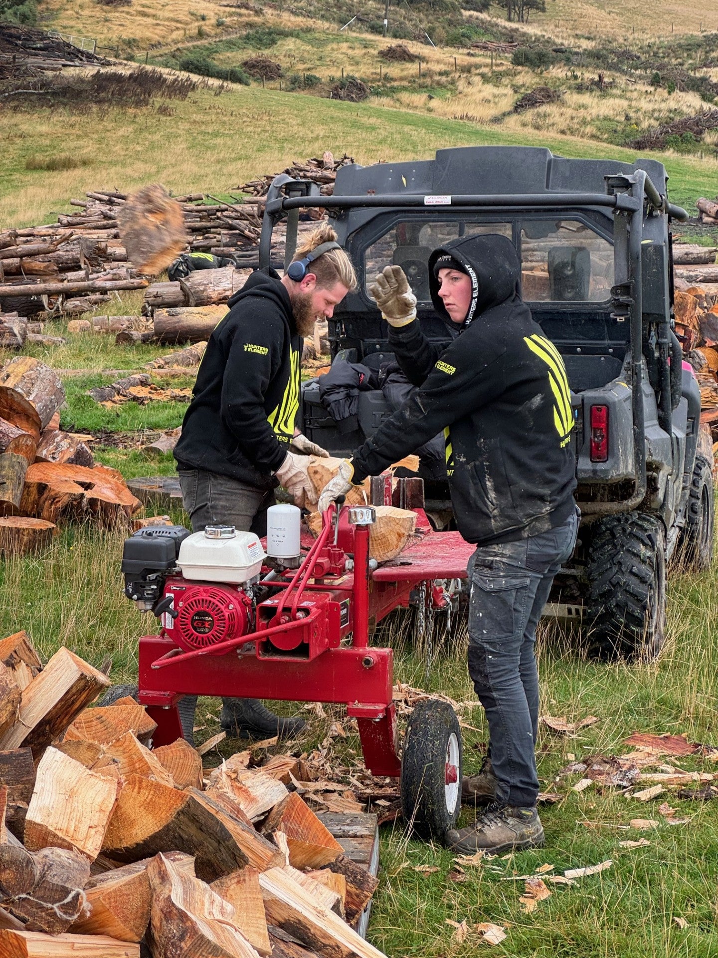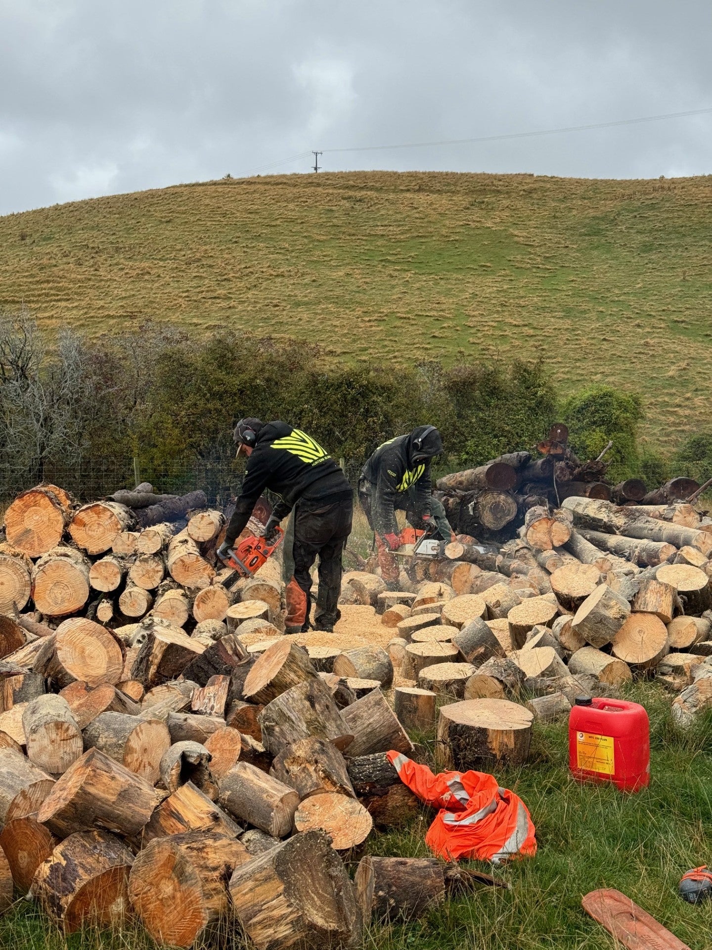Bud Law and his fantastic team from Little Ton Diggers generously donated a full day of work, disking and splitting the logs. With other residents and friends pitching in, the job progressed quickly. In total, approximately 160–180 cubic metres of firewood were processed and eventually sold to Dunedin households. The proceeds funded the second phase of planting in 2025.
